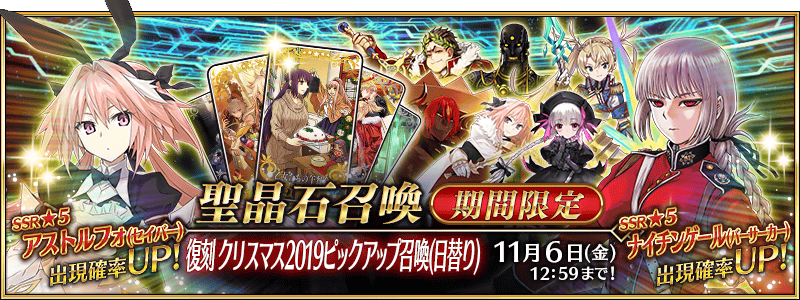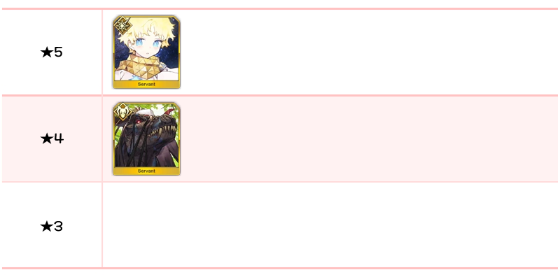 ★5 아스톨프(세이버), 나이팅게일, 브라다만테 / ★4 아슈바타만, 아스톨프(라이더), 너서리 라임 / ★3 율리우스 카이사르, 다리우스 3세