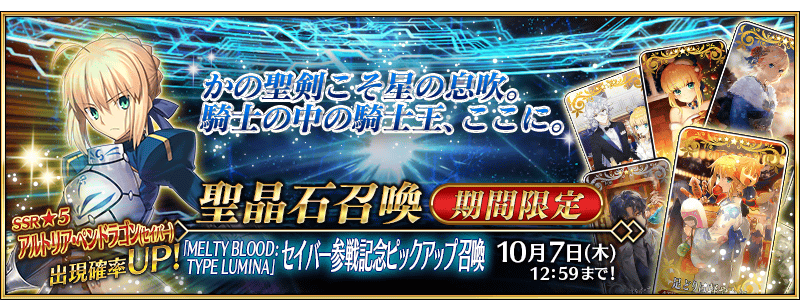 ▶「MELTY BLOOD: TYPE LUMINA」 세이버 참전 기념 픽업(2021. 9. 30 ~ 10. 7)