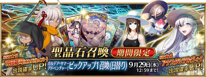 ★5 센지 무라마사, 알트리아 펜드래곤 얼터(수영복), 타마모노마에(수영복), 세미라미스, 초인 오리온, 이리야스필 폰 아인츠베른, 애비게일 윌리엄스