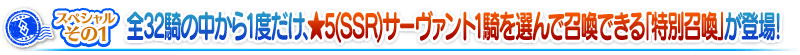 ▶전 32종 ★5성 서번트 중 1기를 선택 소환할 수 있는 「특별 소환」 업데이트(2021. 8. 1 ~ )