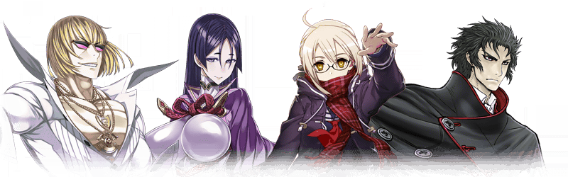 ★5 제임스 모리어티, 셰에라자드, 미야모토 무사시, 애비게일 윌리엄스(포리너) / ★4 에미야 얼터, 펜테실레이아, 키르케, 야규 무네노리, 카토 단조, 시바의 여왕 / ★3 호조인 인슌