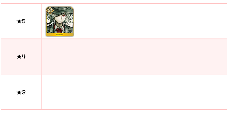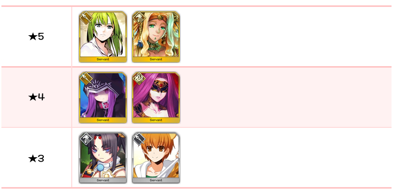 ★5 알테라, 제갈공명 / ★4 스테노, 타마모캣 / ★3 알렉산더, 부디카