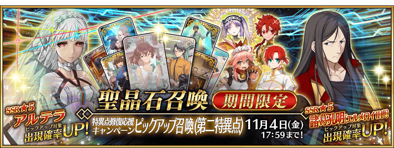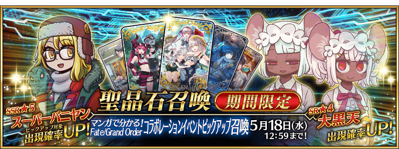 ※동일 기간 동안 친구 포인트 소환이 「만화로 배우는! Fate/Grand Order 콜라보레이션 이벤트 친구 포인트 소환」으로 변경(기존 친구 포인트 소환 불가)