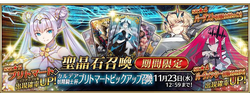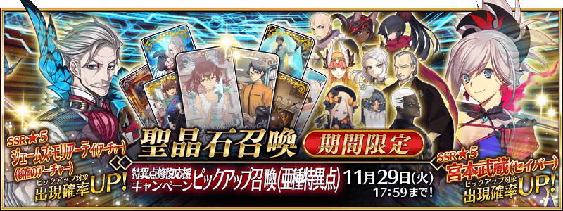 ※2022년 1월 1일부터 기간 한정 픽업 소환에서 329회까지 픽업 대상 ★5 서번트가 한 번도 소환되지 않을 경우 330회에 확정 소환(1번) 기능 추가